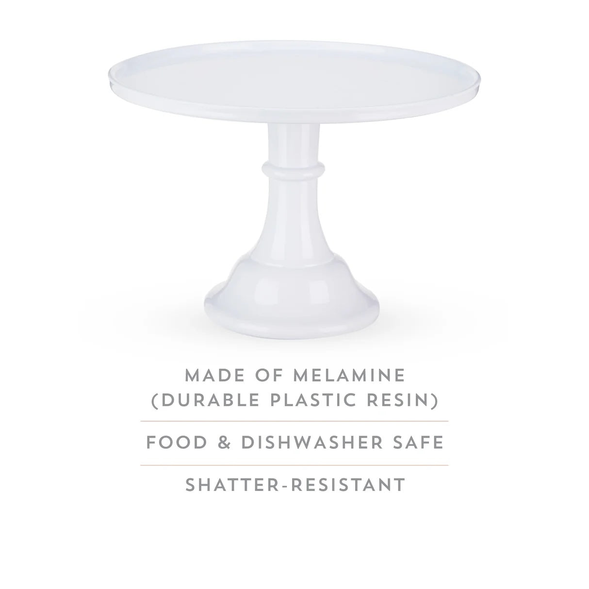 Display your desserts with flair! This pretty white melamine cake stand is perfect for showing off your sweetest creations. Ideal for cakes, tarts, pies, cupcakes, and more.