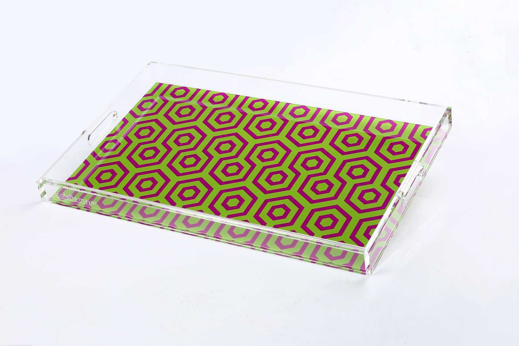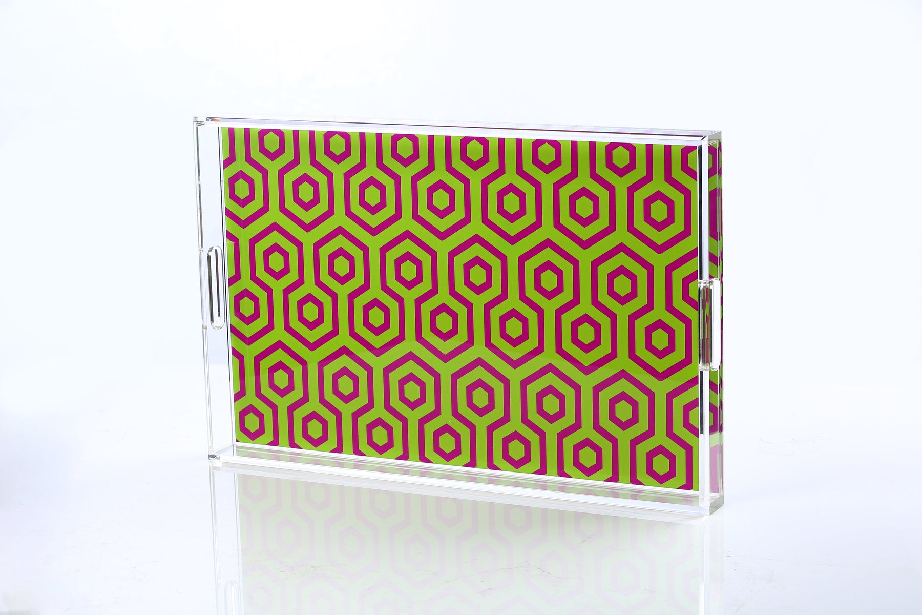 This extraordinary acrylic tray is chic and beautiful for any occasion. With our signature patterns on the back of the tray, it elevates everyday entertaining. For use for your Bar, cocktails, coffee, perfume bottles, etc.